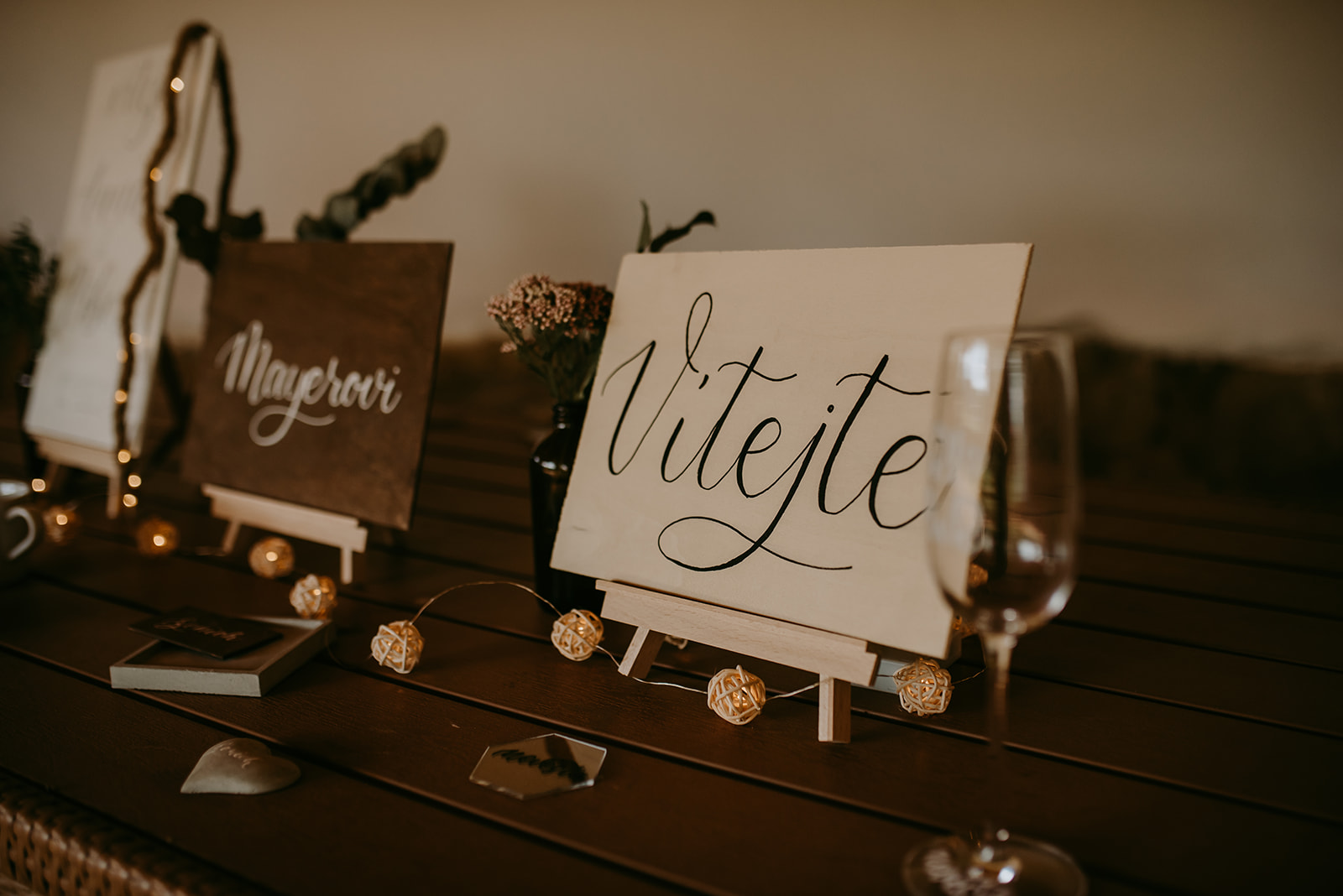 Dřevěné jmenovky a cedulky mohou mít nově i jinou barvu pozadí, viz. vzorník na konci stránky. Mimo barvy na obrázku chystám repertoár doplnit o královskou modrou, vínovou, smaragdovou a černou. V připadě zájmu o další barvy mě neváhejte kontaktovat.