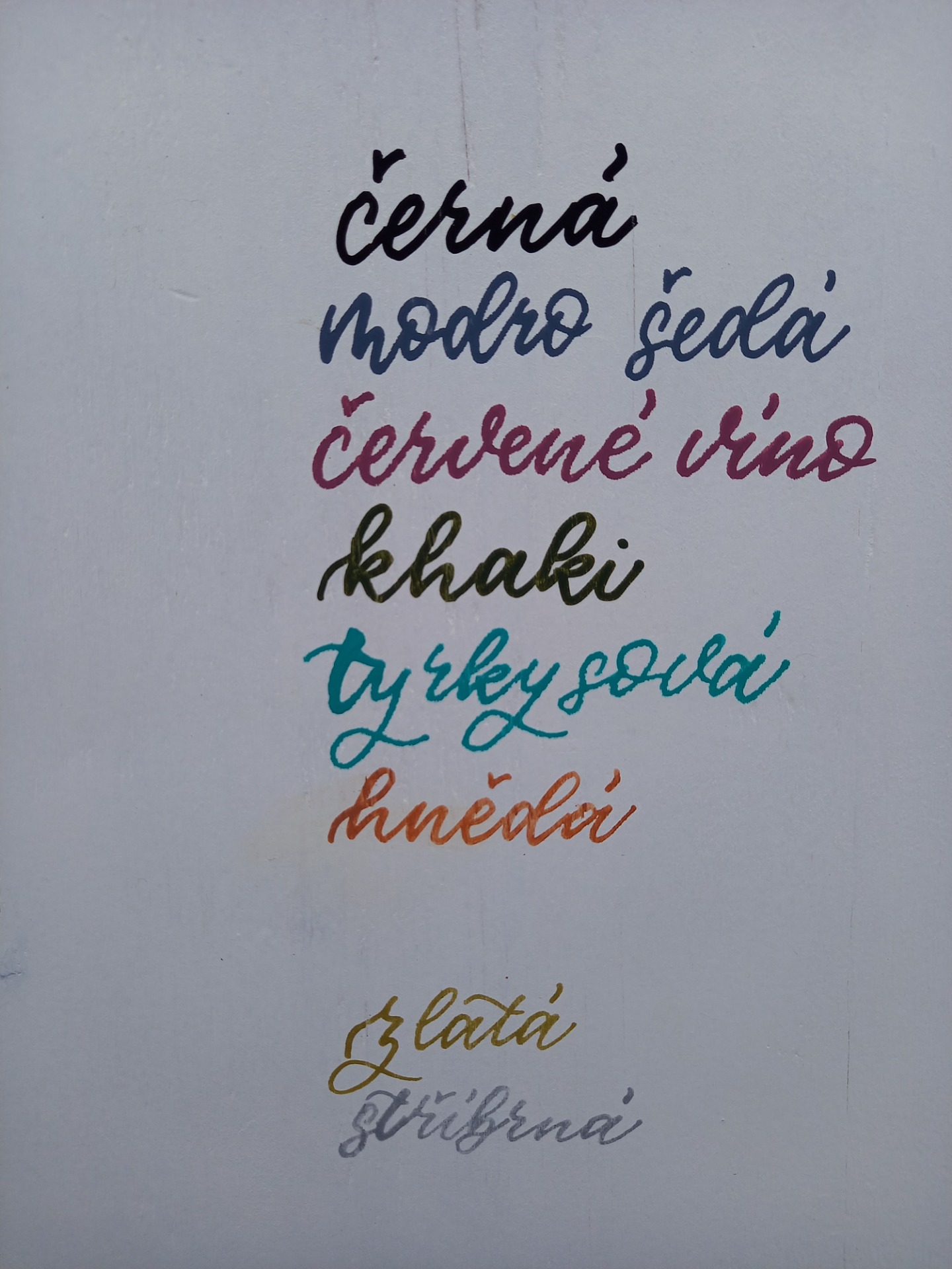 Vzorník barev na konci stránky.